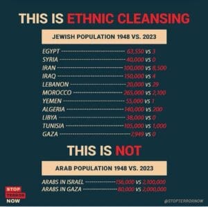 On the other hand, the Arab neighbours have completely cleansed their countries of all their ancient Jewish communities.